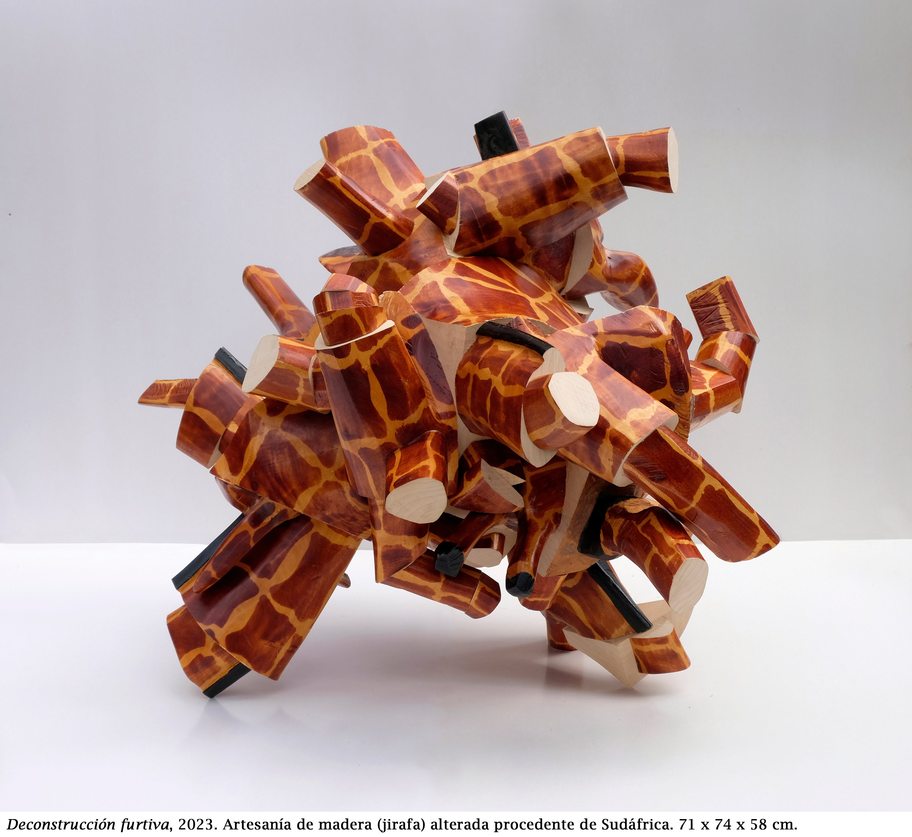 Además de esta obra gráfica, un conjunto de esculturas prosigue la línea de la serie titulada Lucro y desmán. Estas piezas materializan la colonización que ejerce cualquier conflicto bélico sobre el territorio a dominar. Batista se apropia de pequeñas y medianas tallas de artesanía provenientes de África y de otros países, y sobre ellas despliega un interesante desarrollo conceptual que señala el cinismo de Occidente. Muchas de estas piezas de madera son un trasunto de antiguas estatuas y figurillas que actuaban como objetos de culto, que, tras la colonización, fueron reducidas a meros objetos de contemplación estética custodiados por museos. Ahora —tal y como nos narra Las estatuas también mueren— estas creaciones artesanales han terminado por ser reflejo de la producción capitalista, que requiere de una fabricación a gran escala de las mismas para así colmar la necesidad del souvenir de las personas turistas. El golpe de efecto final se produce cuando el artista deconstruye cada una de estas tallas en infinidad de fragmentos y los vuelve a reunir para crear una nueva escultura. Con esta acción otorga a estos particulares objetos de una nueva función: ser una obra de arte.