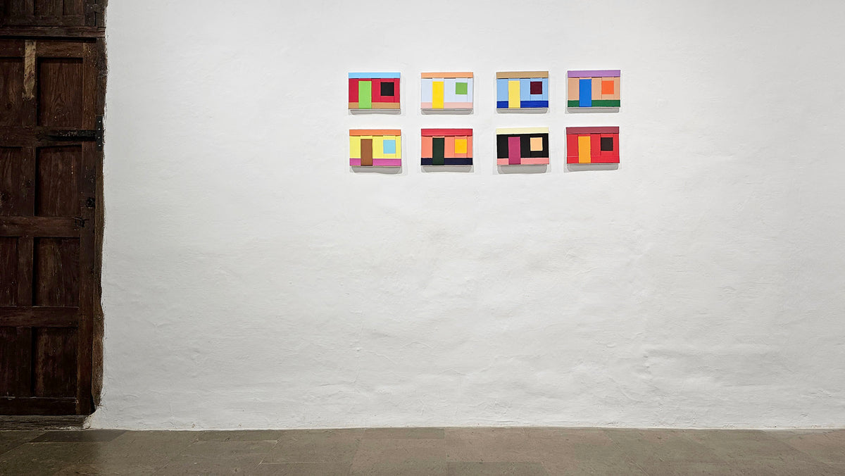 Primer nombre: Oramas. Con él, de trayectoria vital por desgracia tan corta, pero de obra tan deslumbrante, Palmero lleva décadas dialogando. Pinturas solares, sí, radiantes, de alta intensidad poética, ambas, las de Oramas y las de Palmero, que ya escribía sobre su ilustre predecesor en el número 15 de Syntaxis, y que ya entonces contemplaba sus cuadros como talismanes. Uno de los más oramasianos de su producción es, desde su título mismo, Casas del risco (1993). Otros: los del ciclo de 1994 La casa del mar, con sus rojos, amarillos y azules luminosos. En nuestra conversación lanzaroteña él lo deja meridianamente claro, cuando define la pintura de su predecesor refiriéndose a los mínimos pretextos sobre los que la construye: “la casa, la pared, la puerta, la pitera”. Y también: “pintor del mediodía”, “de un mediodía de sol a plomo”. En los cuadros de este ciclo de ahora, que titula Paisaje insular, y que es de geometrías multicolores, parte una vez más de la geometría de la casa popular canaria, cuyo primer cantor fue el Oramas de los riscos de Las Palmas, por él contemplados desde la ventana del sanatorio donde moriría, tan jovencísimo. Resulta emocionante comprobar que cuatro décadas después, el Palmero de la madurez sigue siendo oramasiano, sin parodiarlo nunca. Por mi parte, citaré el poema con que se cierra La dulce geometría: “Versos como cuadros como casas canarias, en la dulzura duran”. (“Dulzura”, en verde).