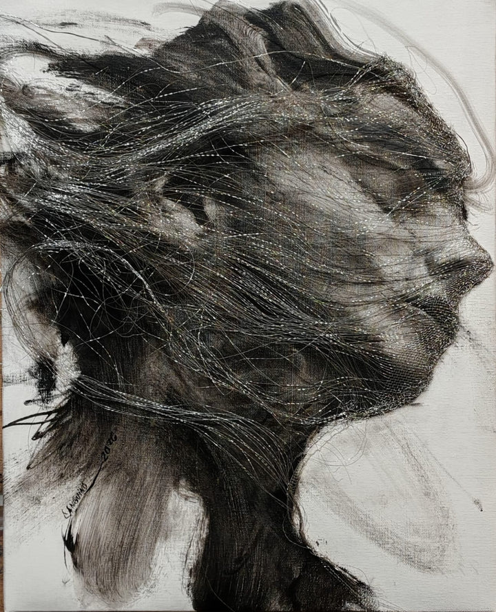 Pieza que forma parte de mi investigación sobre el tema del retrato. En el caso de ésta pieza, hablo del cabello como representación o extensión física de los pensamientos.