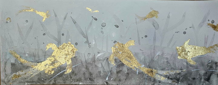 Mixta con tinta china y pan de oro sobre papel