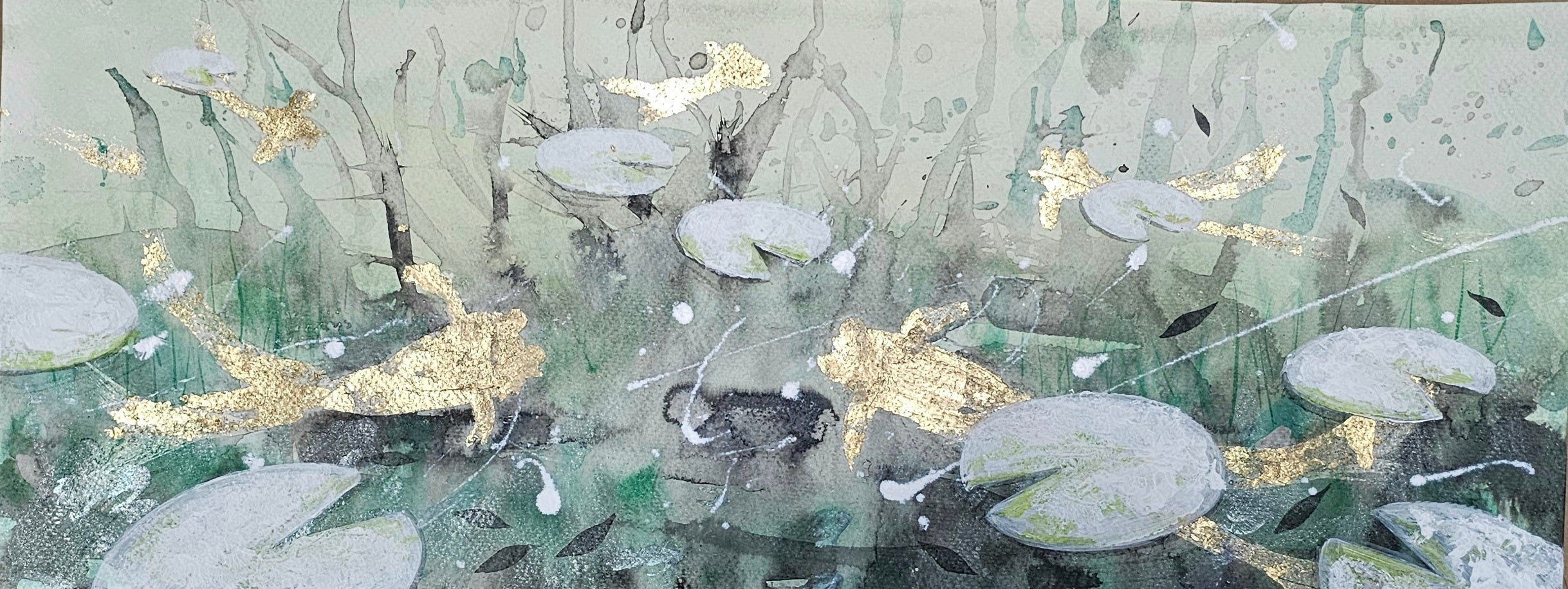 Mixta con tinta china y pan de oro sobre papel