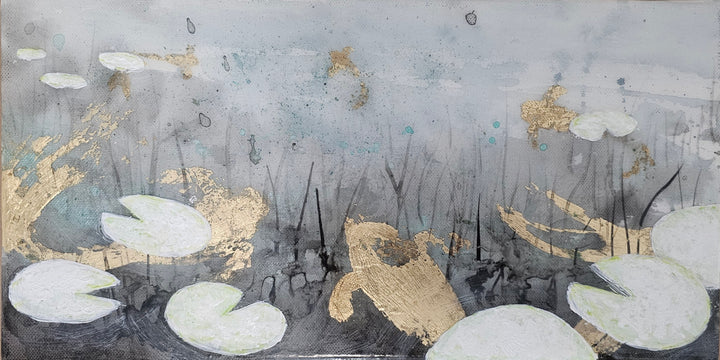 Mixta con tinta china y pan de oro sobre papel