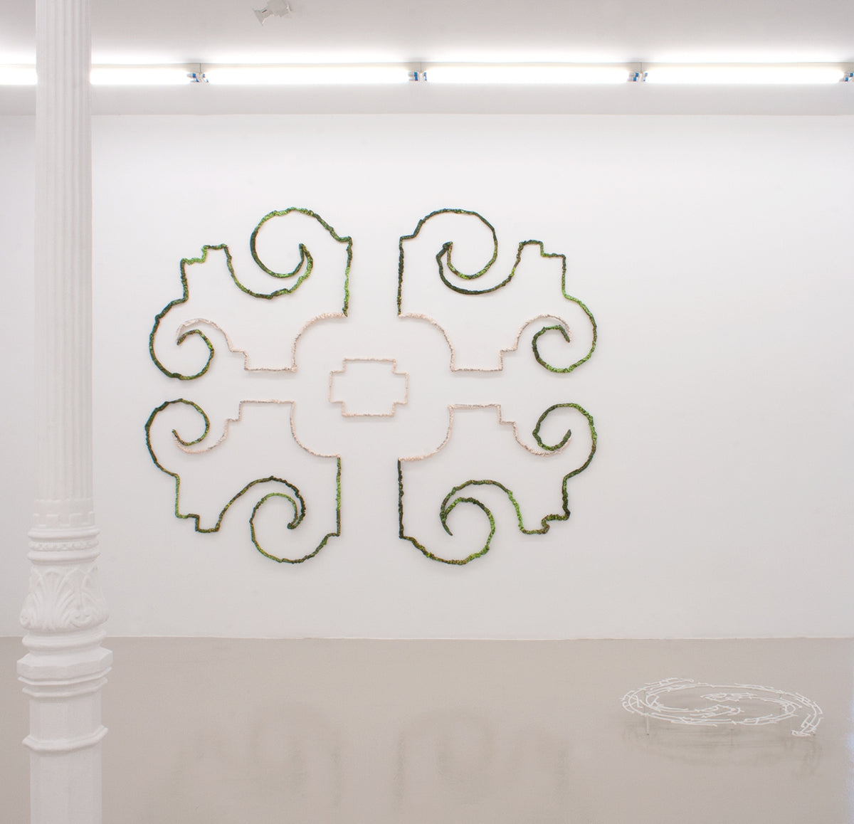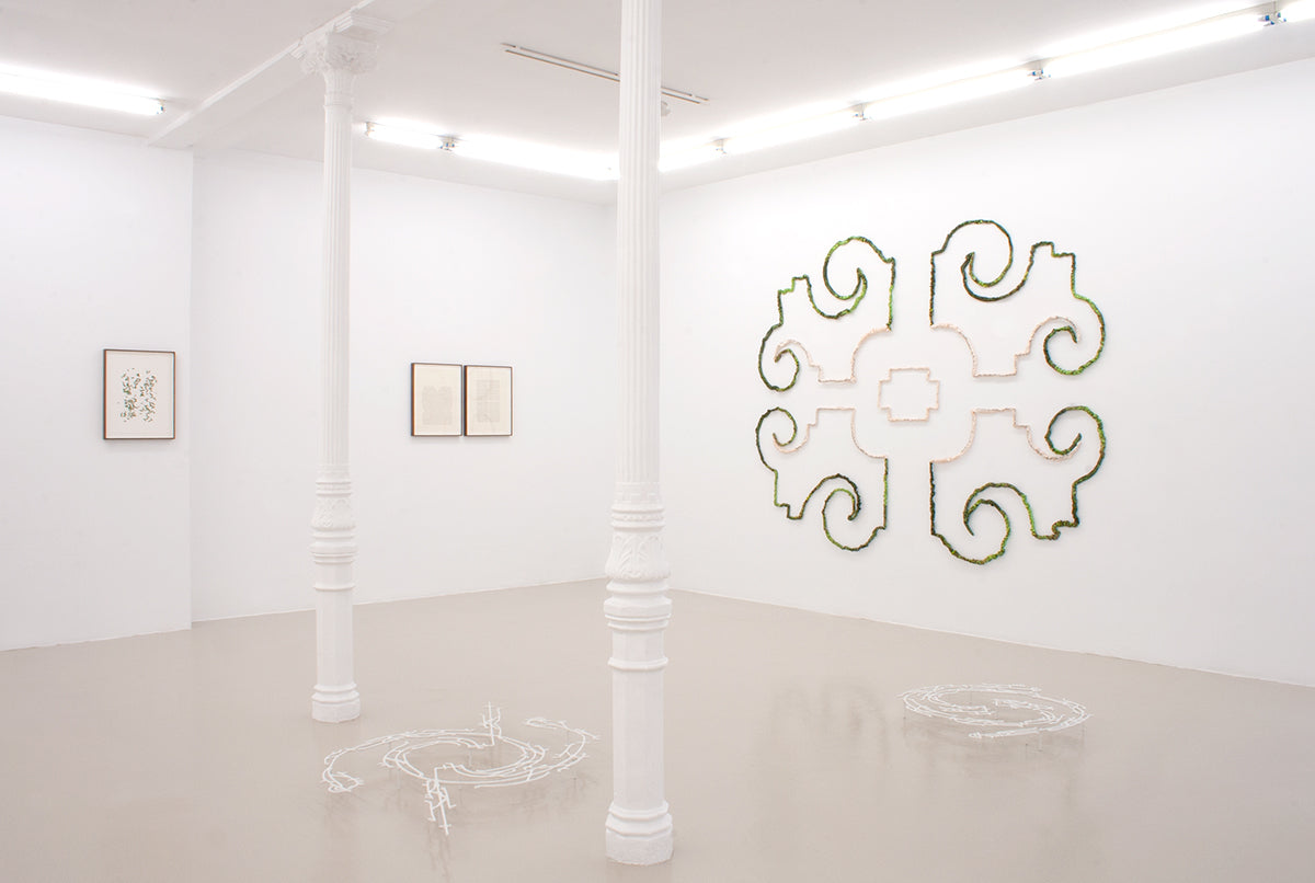 Usando un verso de Rafael Alberti como título, Emmanuela Soria Ruiz sitúa el punto de partida del proyecto en el mito de Ío, justo en el momento en el que, transformada en vaca, escribe su historia en el suelo. Con esta narración, y a partir del movimiento de su pata (la mano), el personaje mitológico establece una nueva relación entre las palabras y un espacio de lectura transitable, el suelo. Este vínculo lleva a la artista a investigar diversos planos donde situar el texto, que le llevan a introducirse en el tiempo del Barroco y a abordar el poema visual, la partitura coreográfica y el jardín, asuntos a partir de las cuales construye las piezas del proyecto, pero sin perder de vista el movimiento de la pata de Ío.