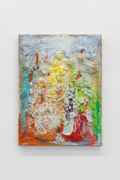 Óleo y polvo de mármol sobre malla de punto de cruz