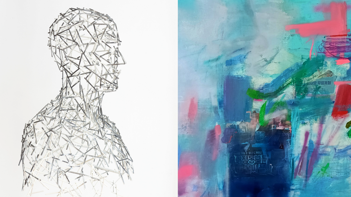 En contraste, aunque no en oposición, Pedro Rodríguez Garrido despliega una pintura que articula gesto, memoria y superficie. Su tránsito desde la figuración, en especial el paisaje urbano, hacia la abstracción no ha borrado la dimensión narrativa, pero la ha matizado a través de lo simbólico y lo lírico. La suya es una práctica atravesada por lo biográfico y lo cultural: desde su estancia en Corea del Sur, su obra asimila fragmentos del alfabeto hangul y motivos del imaginario asiático, que entrelaza con recursos de las vanguardias históricas y del expresionismo abstracto. Este cruce de lenguajes y temperaturas, entre lo íntimo y lo histórico, lo escrito y lo pictórico, lo oriental y lo occidental, convierte la superficie en una topografía afectiva, donde color y materia configuran una memoria en transformación. Más que ilustrar una experiencia, la encarna y la reordena como imagen interior: inestable, abierta, radicalmente subjetiva.