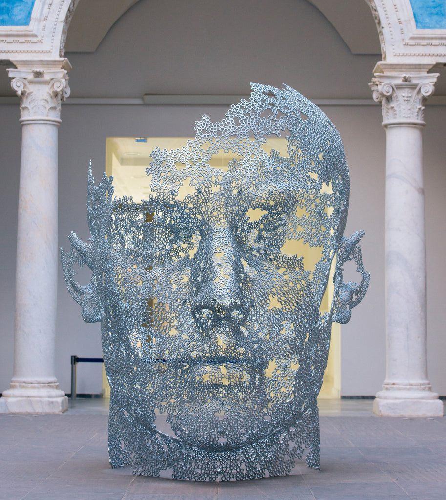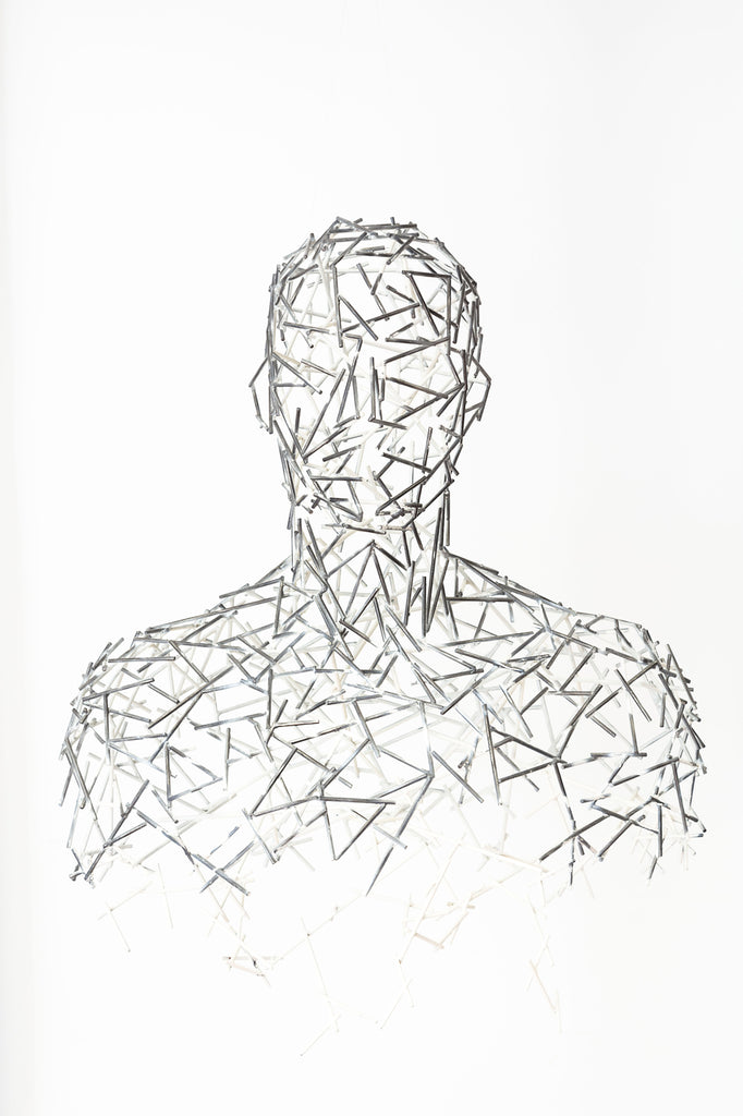 La producción escultórica de Martí Moreno abre múltiples vías de interpretación, aunque siempre desde un horizonte común: una mirada crítica sobre el cuerpo humano y el rostro como sede simbólica de la identidad. Esta inquietud se expresa mediante una poética del fragmento, elaborada con materiales industriales y objetos reutilizados (tuercas, varilla corrugada, tela metálica, fibra de vidrio, resina de poliéster, entre otros) que evocan ensamblaje, tensión y precariedad. Este modo de hacer no responde a una mera cuestión formal: alude a un sujeto humano entendido como entidad compleja, fragmentaria e incompleta, en constante proceso de reconstrucción. En diálogo con la tradición escultórica, pero alejándose de su ideal clásico de unidad, Martí Moreno activa la reflexión desde la materia: una indagación sobre lo humano en su inevitable condición de impermanencia.