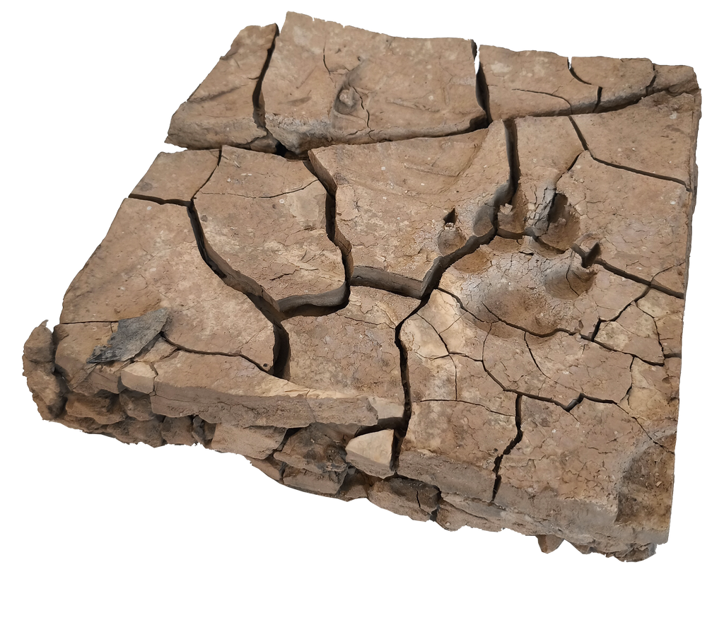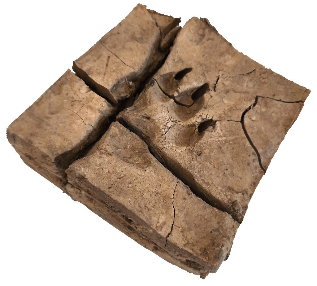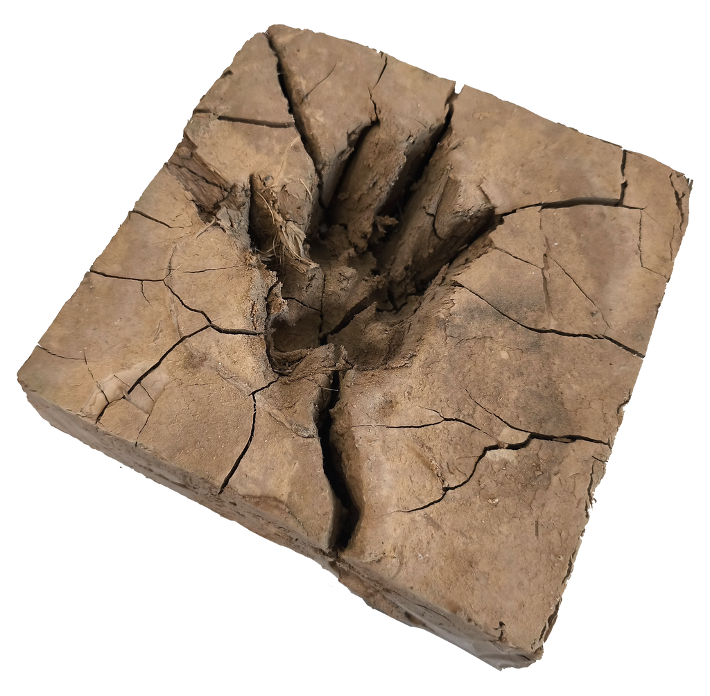 La artista Lluci Juan, vinculada afectiva y profesionalmente a Paiporta, recogió el limo depositado por la riada, conservando en él las huellas de los perros de rescate que buscaron cuerpos entre los escombros. Estas marcas, impresas en el barro, se convierten en piezas cargadas de significado: no solo documentan lo ocurrido, sino que encarnan la dimensión humana del desastre y los esfuerzos por encontrar a las personas desaparecidas. Cada obra es una forma de recordar, de sostener el dolor y de activar la memoria desde el cuerpo y el territorio.