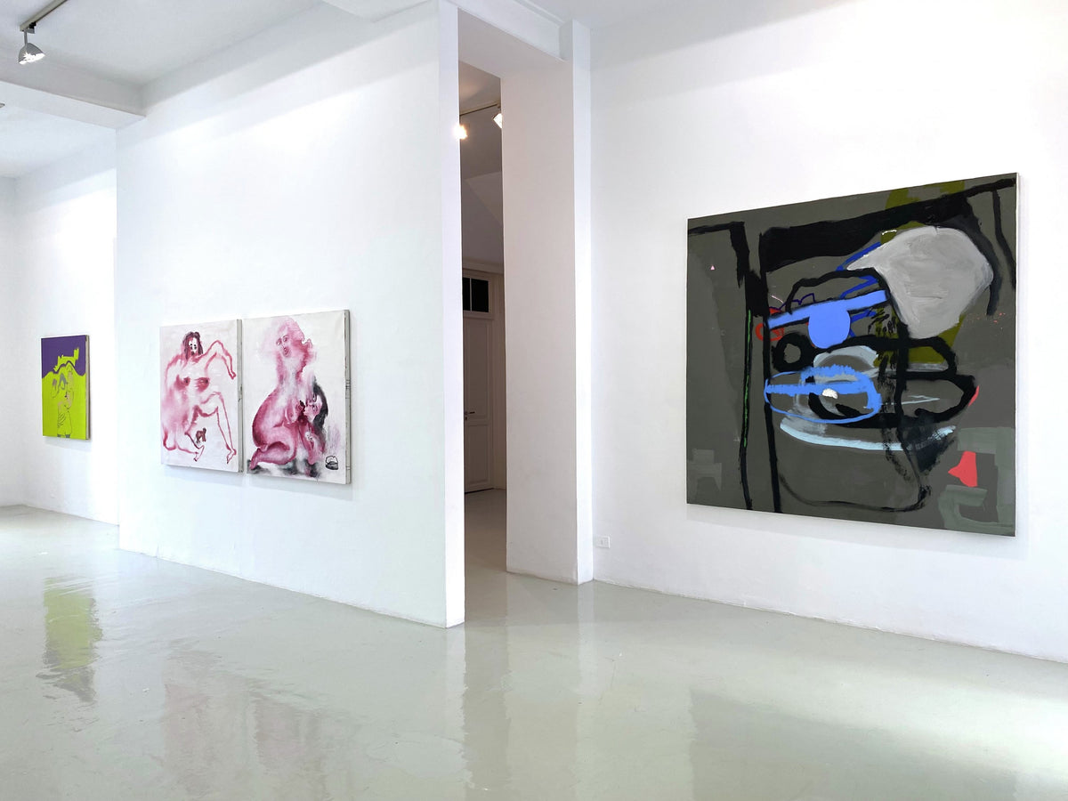 Claire Bendiner, por otro lado, se adentra en la abstracción del espacio, conectando los hilos de la memoria, el yo y el entorno. Cada una de sus composiciones es una ventana personal a diferentes lugares familiares y vivencias. Interiores domésticos, vestíbulos de salas de espera, circuitos urbanos, sótanos subterráneos y cabinas de automóviles se convierten en metáforas visuales a partir de sus recuerdos y referencias. Claire Bendiner elude las representaciones convencionales en favor de decisiones materiales y formales que capturan la esencia de estos espacios.