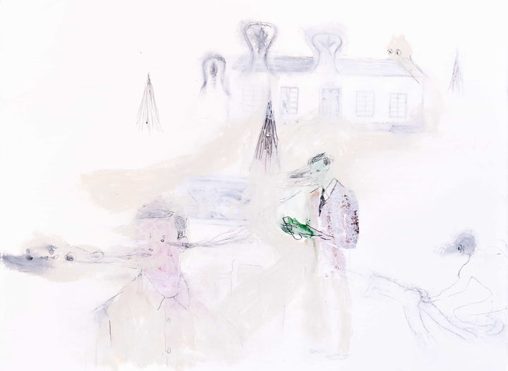 Lápiz, acuarela y óleo en barra sobre papel