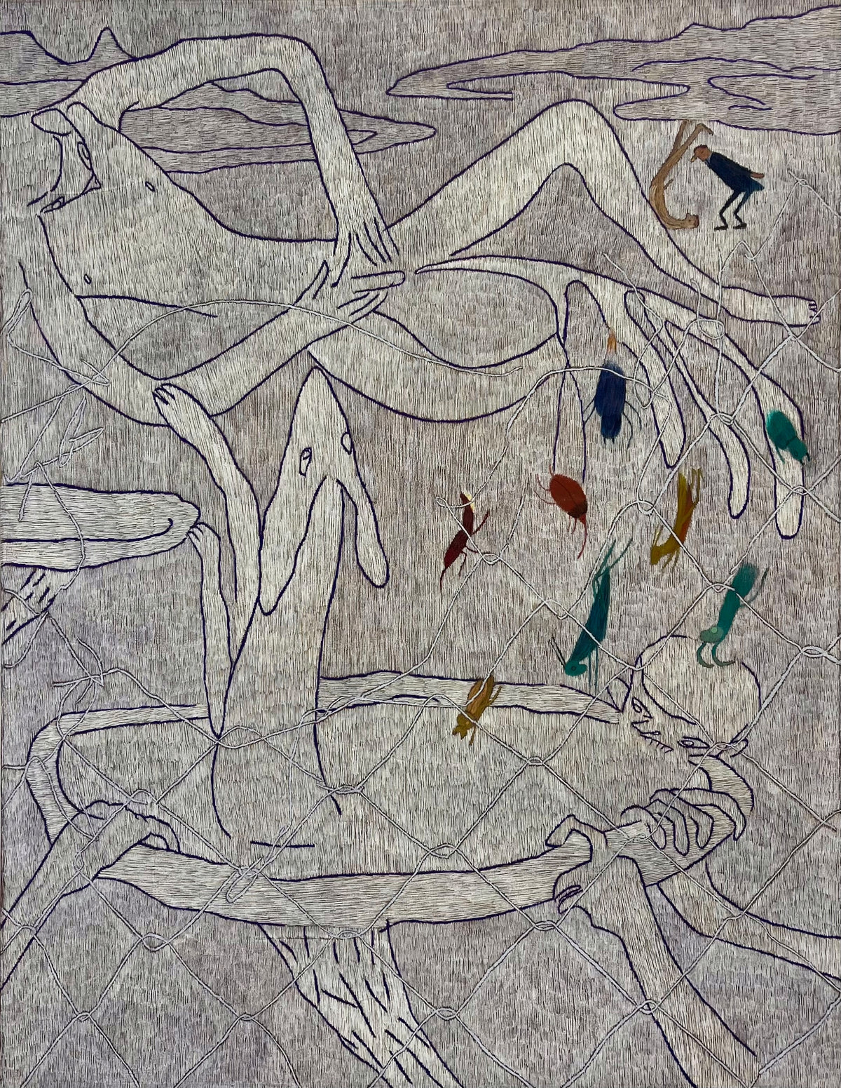 Son esas las mismas manos que recogen estas escenas, que agarran, se preocupan, abrazan y se desenvuelven. Son manos de trabajo, pero también manos de afecto que recorren los cuerpos y sellan el vínculo humano con una naturaleza que se muestra fluida, fértil, por veces afectiva -quizás en su fase onírica- y por veces amenazante -quizás en la vigilia-. Son, intuyo, manos que dicen también hola, al tiempo que dicen adiós."
