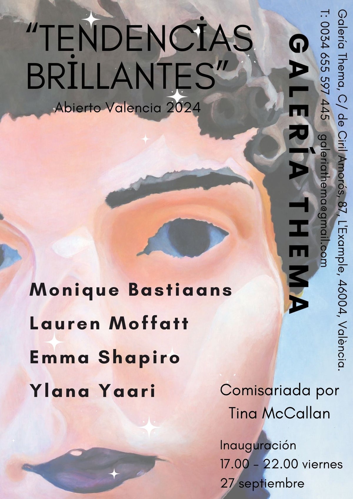 ‘Tendencias brillantes’ comisariada por Tina McCallan, con las artistas Monique Bastiaans, Lauren Moffatt, Emma Shapiro, Ylana Yaari es un viaje a una cúpula de cristal imaginaria que contiene las mentes de cuatro artistas femeninas que nos invitan a sus universos únicos. Tomando como punto de partida las ideas de Donna Haraway sobre el ‘yo posmoderno’ exploradas en su ensayo "Conocimientos situados: la cuestión científica en el feminismo y el privilegio de la perspectiva parcial", ella escribe: “El ‘yo’ o ego que conozco es parcial en todas sus formas, nunca acabado, completo, sencillo y original; siempre está construido y cosido imperfectamente, y, por lo tanto, puede unirse con otro.” Las ‘identidades’ de los artistas hacen referencia a estas teorías, así como a las teorías de la hibridación de Harraway, donde postula que ahora todos somos cyborgs, una mezcla de humanos y máquinas, ya no somos individuos con un yo integrado, sino que estamos conectados a un sistema conectado a todo donde todos tenemos múltiples “identidades”. Los artistas exploran la naturaleza, la identidad, la tecnología y el cuerpo a través de los temas del yo múltiple o en capas, lo macro y lo micro, y los portales a otras dimensiones a través de una mirada feminista.