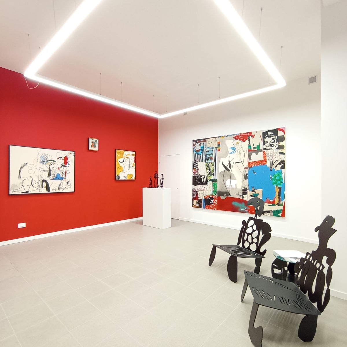 Pues la tríada, la conjunción mágica que late dentro de la artista y bule por salir, extenderse y mostrar su particular equilibrio convirtiéndose en color, forma y volumen para llenar el espacio, desbordando el marco de tres paredes blancas, tomado de forma espontánea, visceral y sin organización premeditada y cuyo todo, el todo como suma de las partes, intenta transmitir la alegría de su percepción del mundo y hacer de la alegría la esencia última de su ARTE.