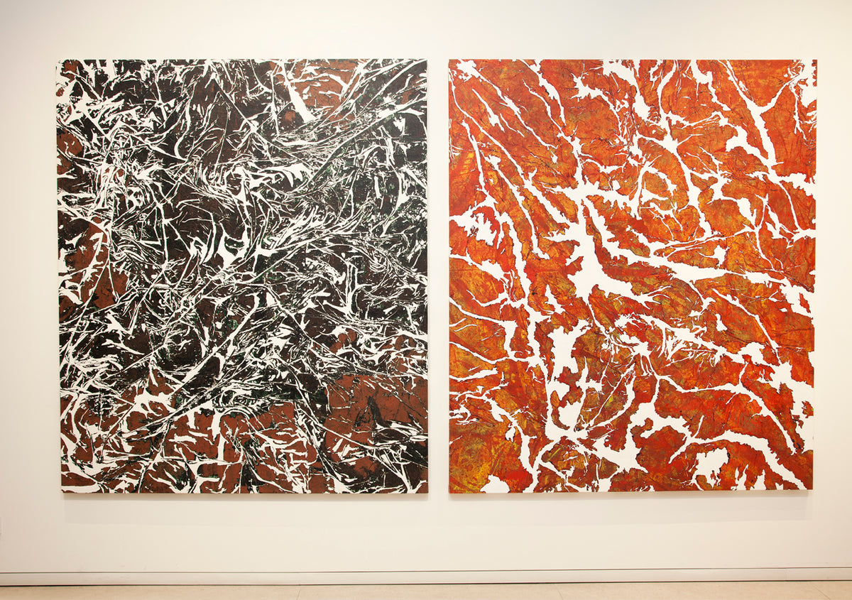 Las obras de Rubat, ricas en texturas, surgen a partir de finas hojas de papel intervenidas con esmero — veladas, esculpidas y matizadas— sobre vibrantes superficies de acrílico. Su proceso por capas crea formas que se asemejan a esculturas en bajorrelieve, en las que el papel adquiere una dimensión escultórica. El resultado evoca patrones naturales: estructuras celulares, paisajes erosionados o rocas desgastadas. Su configuración exacta viene determinada por una serie de factores que escapan, en parte, al control del artista.