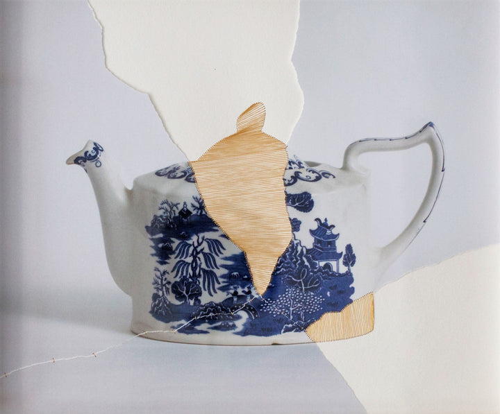 Fotografía rasgada y suturada con hilo de oro sobre papel