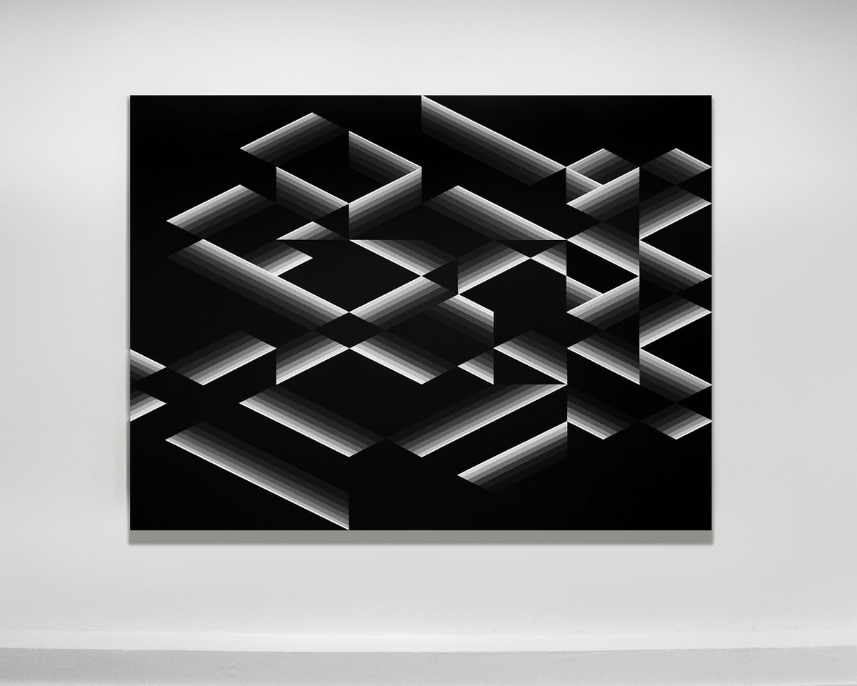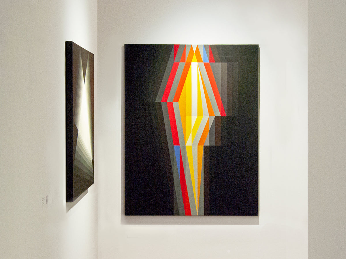 El artista presenta en la galería una treintena de obras inéditas, patentando la exquisita musicalidad y la renovadora armonía de sus pinturas geométricas.