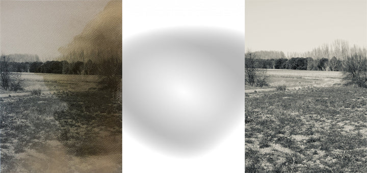 La obra está formada por 2 impresiones fotográficas (48x33 cm cada una, una de ellas manipulada y pintada) y una plancha de plexiglass compacto (40x40 cm aproximadamente); las medidas de la instalación pueden variar entre...