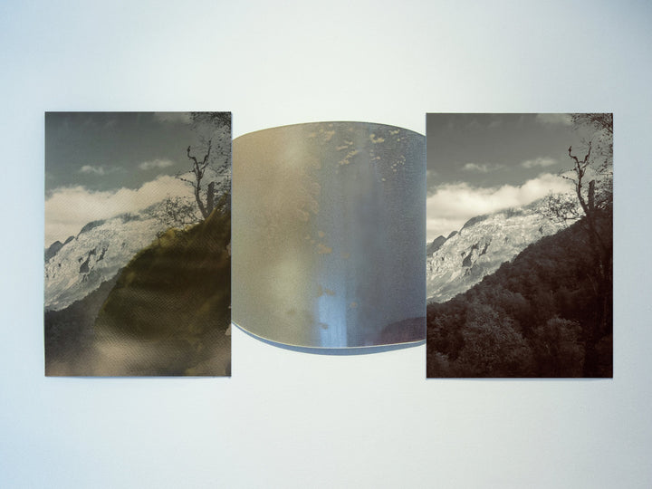 La obra está formada por 2 impresiones fotográficas (48x33 cm cada una, una de ellas manipulada y pintada) y una plancha de plexiglass compacto (40x40 cm aproximadamente); las medidas de la instalación pueden variar entre...