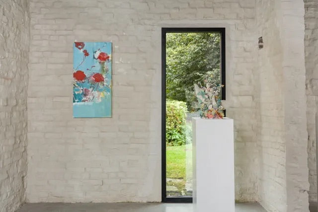 Joke Hansen redefines the boundaries of painting, rejecting the conventional canvas in favor of irregular, dynamic surfaces. Her shaped paintings engage in a constant dialogue between gesture and form, where the act of painting itself becomes an exploration of material tension and spatial disruption. The works hover between the familiar and the unexpected, blurring the line between object and image.