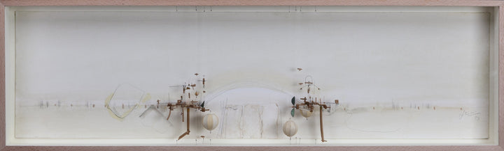 Madera de castaño, alambre acerado, cuerda. Montado en vitrina de madera de haya y cristal