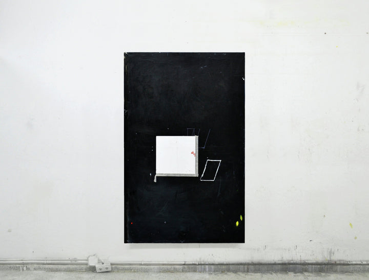 Óleo, spray, esmaltes y papel pegado sobre lienzo.