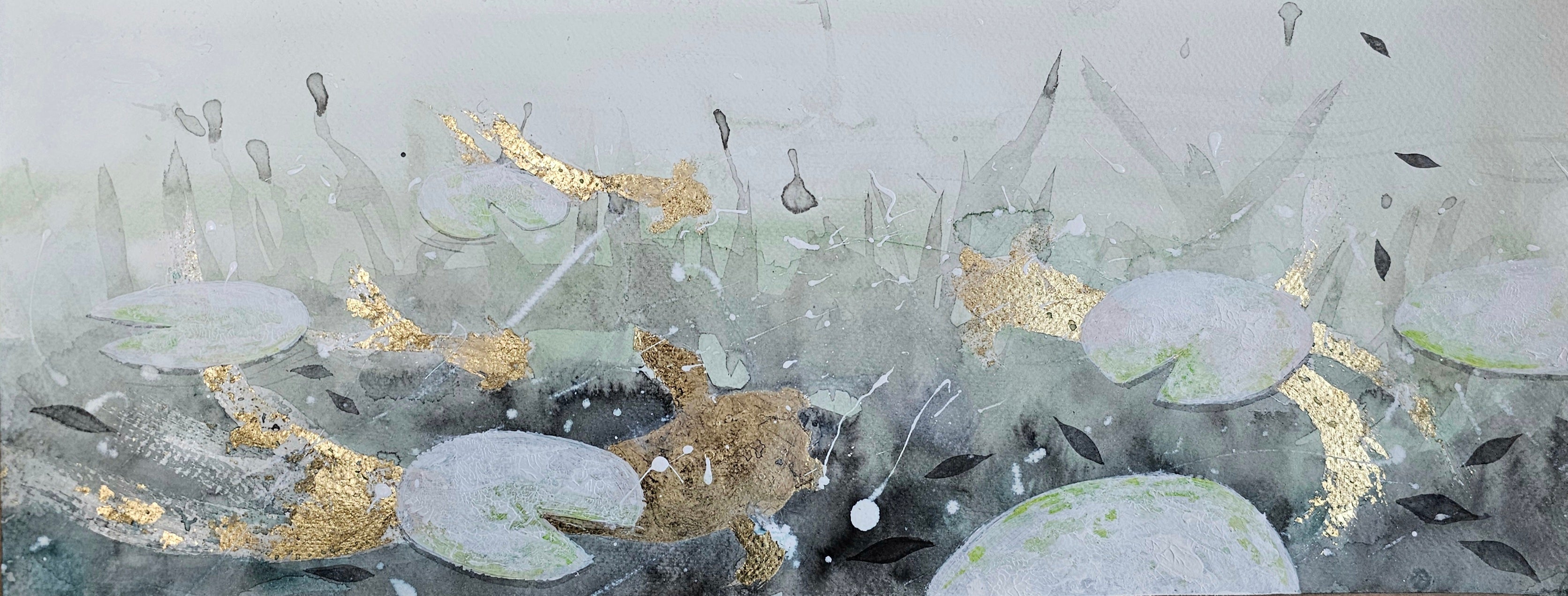 Mixta con tinta china y pan de oro sobre papel