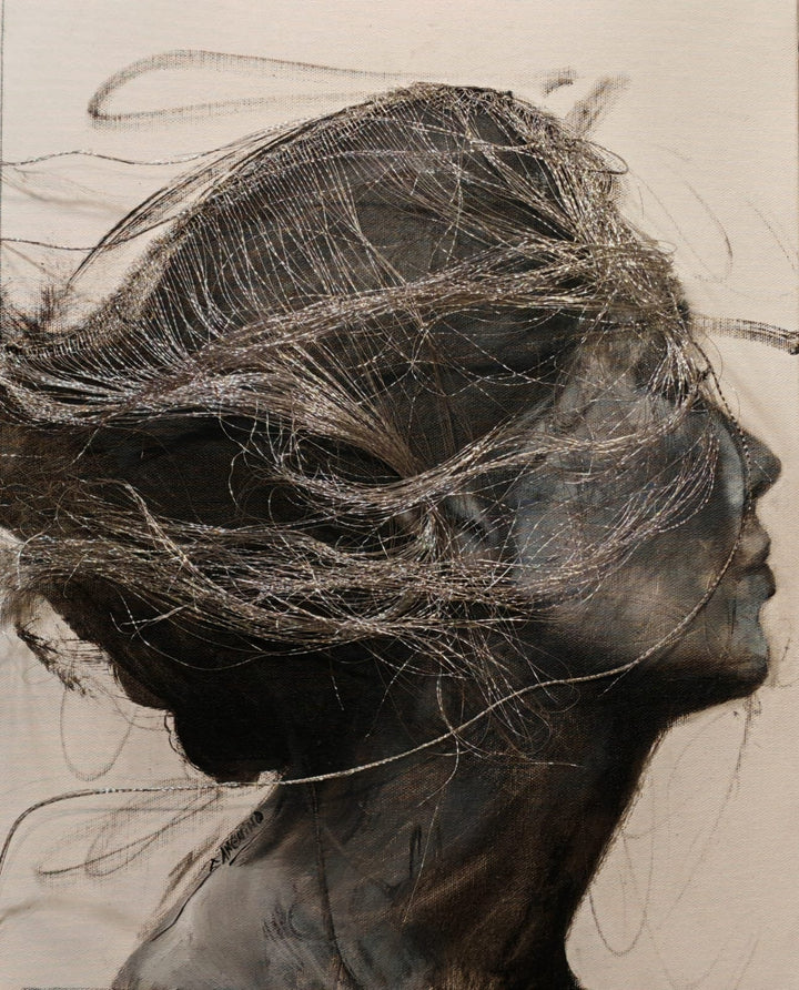 Pieza que forma parte de mi investigación sobre el tema del retrato. En el caso de ésta pieza, hablo del cabello como representación o extensión física de los pensamientos.