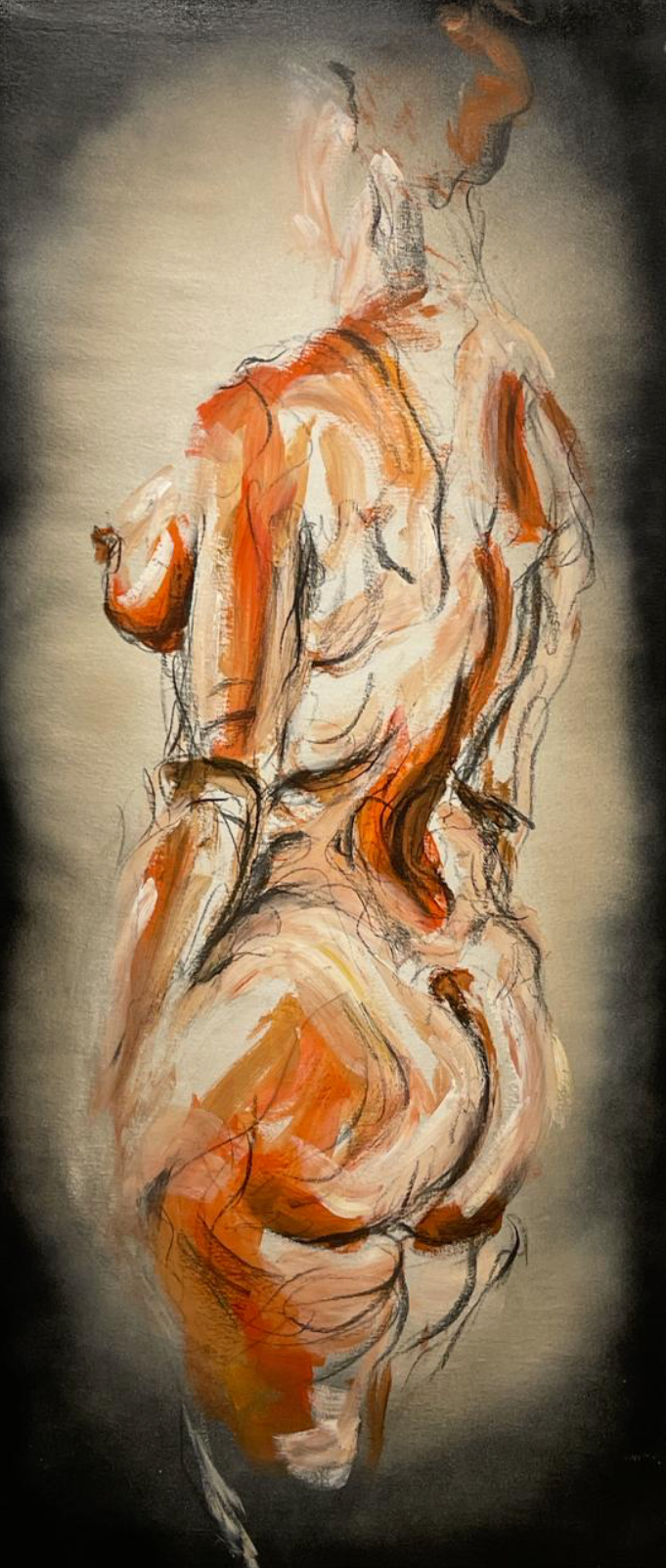 Acrílico y carboncillo sobre lienzo.