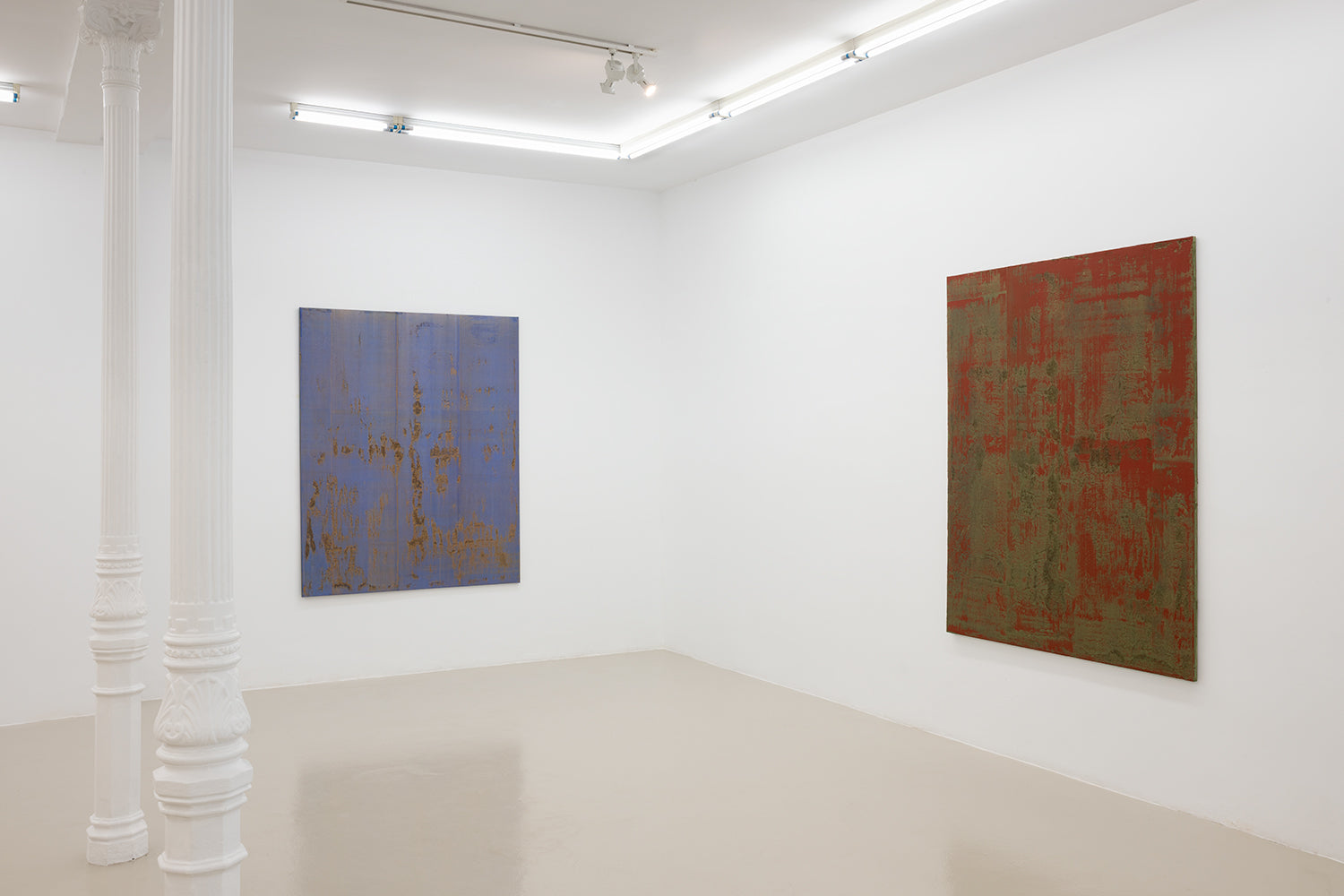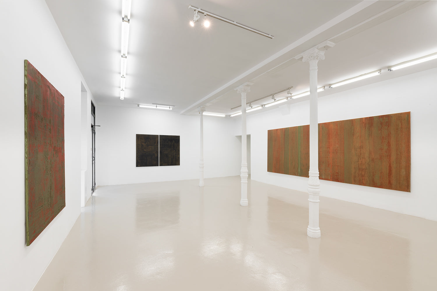 En Urda, los verdes profundos y los rojos óxidos heredados de fases intermedias de Peirao crean una tensión cromática intensa, dando lugar a una pintura tan óptica como háptica, donde la materia y la luz alcanzan un equilibrio preciso.