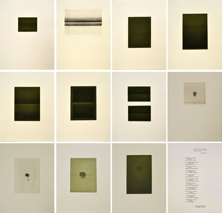 11 aguafuertes sobre papel Arches con un poema de Carls Camps i Mundó. Colección "Las estampas de la cometa"
