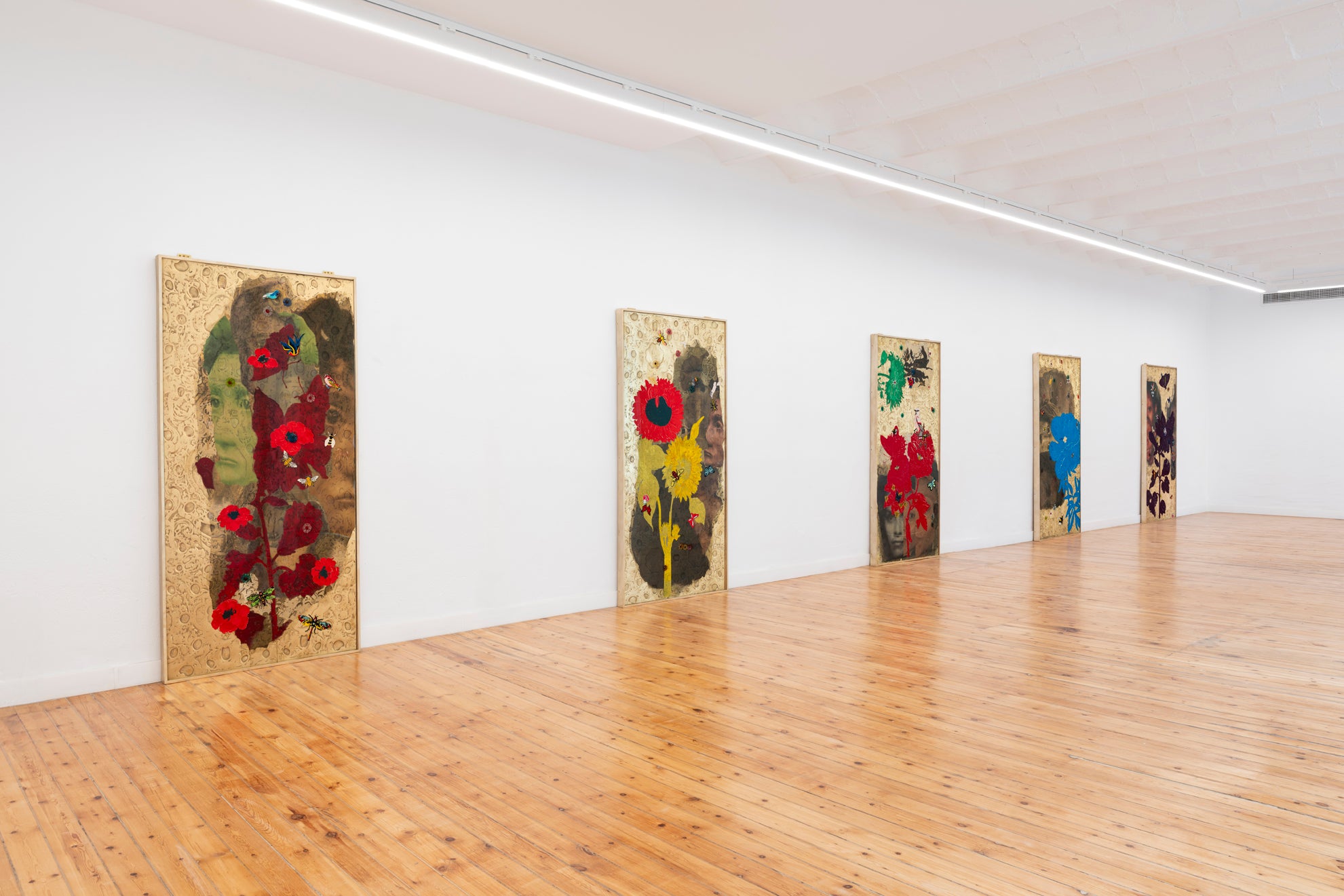 José María Sicilia presenta en Prats Nogueras Blanchard Madrid la exposición 'El final del cuento', que reúne obras realizadas con latón, bordado, papel japonés, óleo y cristal de Murano, realizadas en 2024.