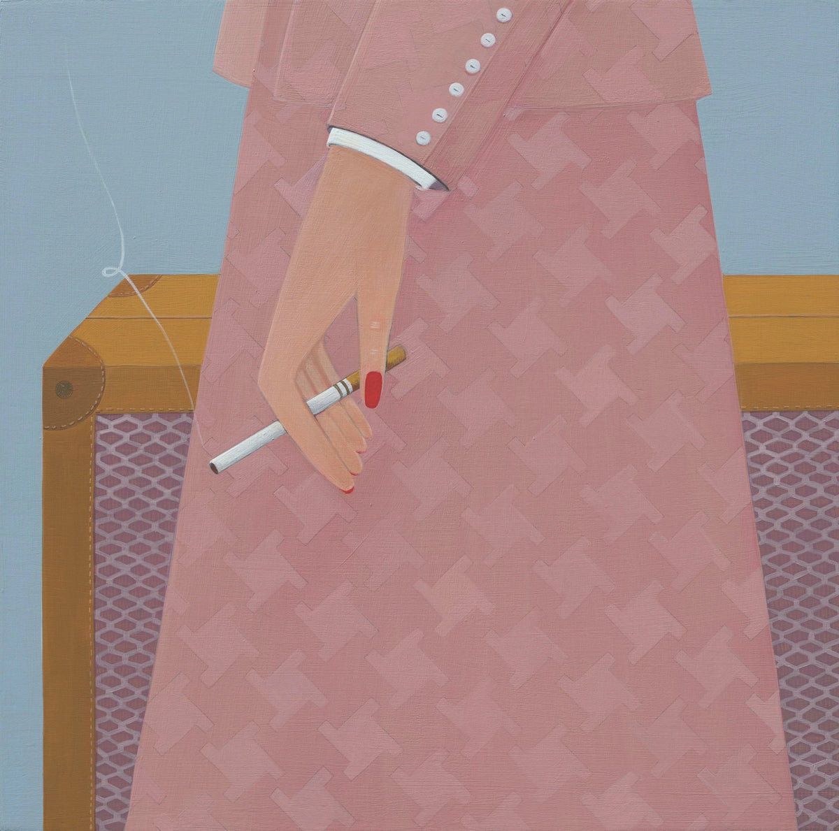 Influenciada por una estética, moda y objetos propios de épocas que resultan anacrónicas, Angela Burson (Liberty, Misuri, 1969) pinta figuras, sus pertenencias y espacios habitados dando lugar a relaciones psicológicas y sociales complejas.