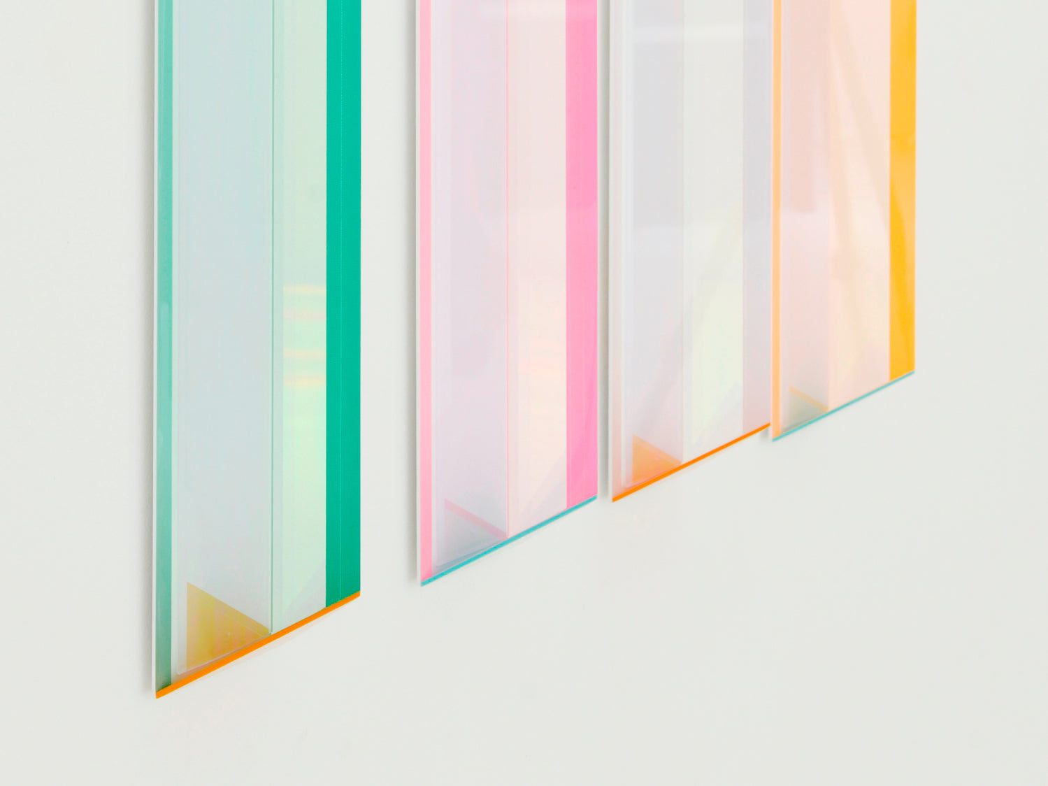 Como resultado, obtiene obras de colores y efectos cambiantes, que no sólo se relacionan con el espacio circundante, sino que cada vez sorprenden al espectador con una experiencia distinta dependiendo del ambiente lumínico.
