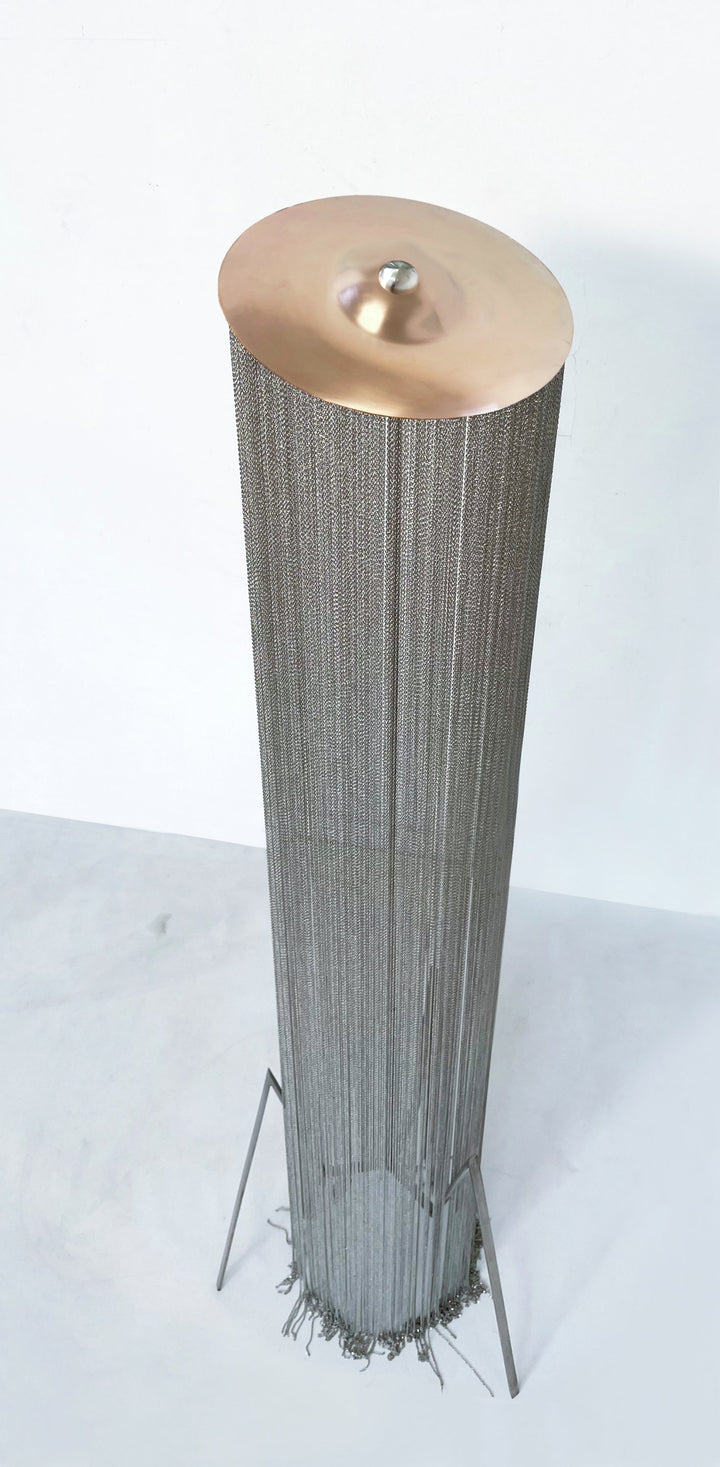 Acero inoxidable, platillo cobre y cadenas