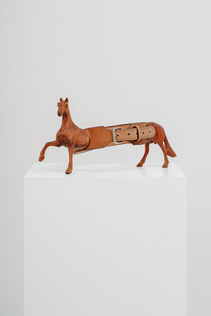 Wood carving, leather, wood